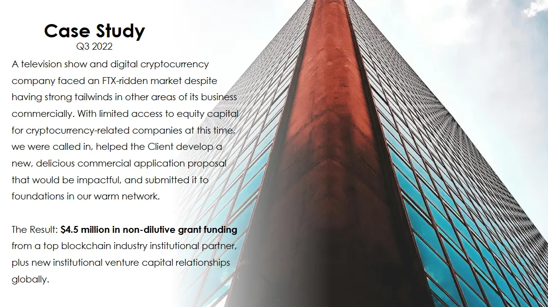The Result: $5 million+ in non-dilutive grant funding from a top US blockchain industry institutional partner.